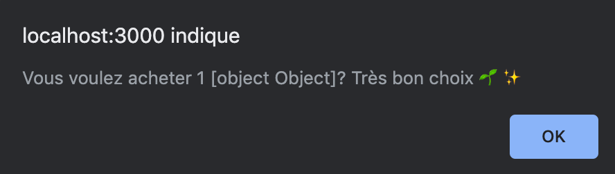 Je vais pousser cet exercice un peu plus loin : on va déclencher une alerte qui affiche le nom de la plante sur laquelle on a cliqué.
