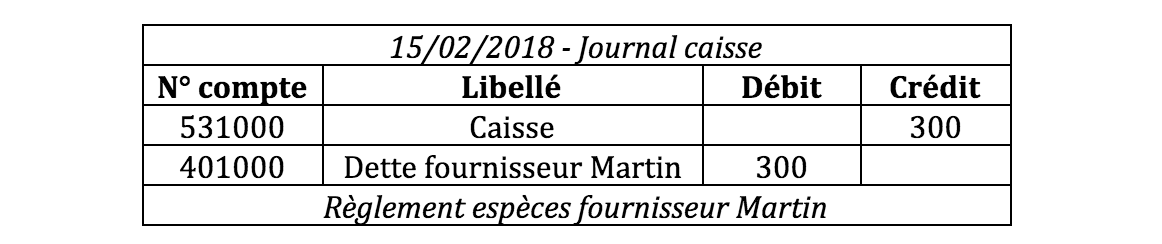 Le 24 février vous réglez ces fournitures par espèces.