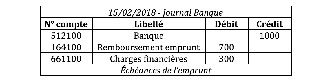 Le 20 février vous réglez l’échéance mensuelle de votre prêt bancaire qui se compose ainsi :