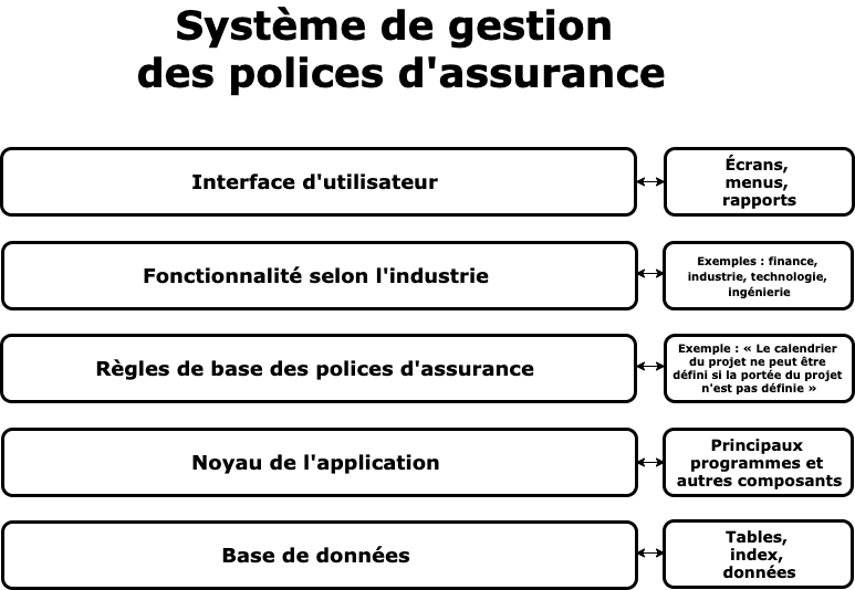 La couche des règles de gestion (Business rules layer) : Cette couche contient des règles qui déterminent le comportement de l'ensemble de l'application, par exemple : « Si une facture est imprimée, il faut envoyer un courriel au client, sélectionner tous les articles vendus et diminuer leur stock dans le module de gestion des stocks. »